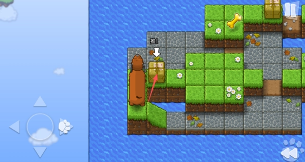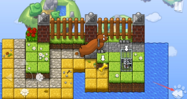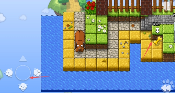 1、借助虚拟方向键操控救援犬在障碍重重的场景里移动,以精准锁定被困幼犬的方位。