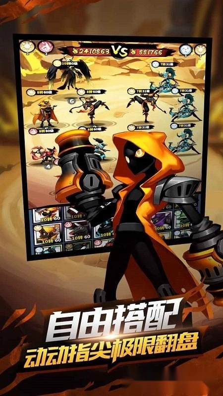 极致画面体验:高品质的视觉呈现,丝滑的击球手感,炫酷的技巧与特效,为你带来更沉浸的游戏感受! 经典棍图英雄:风格各异的棍图英雄角色,无论是近战畅快连击还是远程火力轰炸,都能让你尽享酣畅战斗!