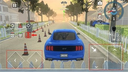 2、驾驶前,请务必先系好安全带。之后,利用屏幕左下角的按键控制汽车方向,右侧的按键则负责操控汽车的前进、停止等功能。