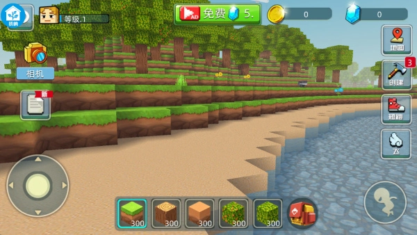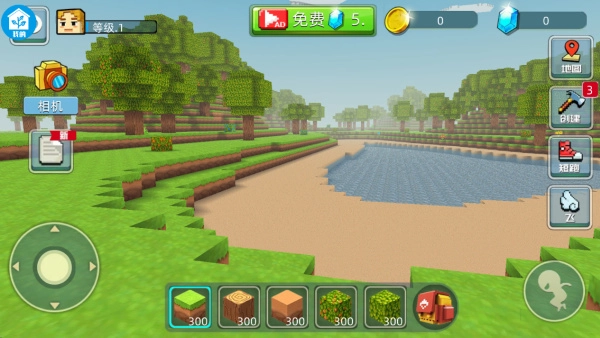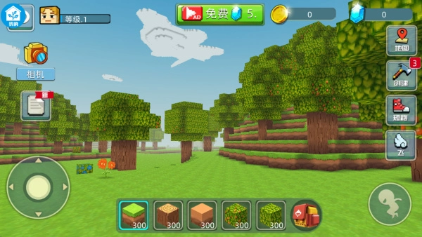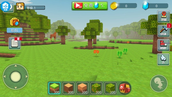 2、移动角色观察四周,点击建造方块,慢慢打造属于自己的小天地。