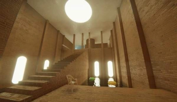 进入圆形区域黑暗楼梯的深处直至播放音效。