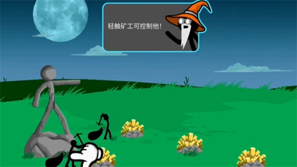 游戏开始时,我们得先用矿石招募挖矿者进行采矿;等积累了足够矿石,就能解锁并购买各类火柴人单位,像持剑的近战型、搭弓的远程型等都包含在内。接下来需要合理编排己方队伍的阵型,目标是集中火力一举摧毁对方的雕像,这样就能赢得胜利。整体的操作逻辑还是比较容易上手的。