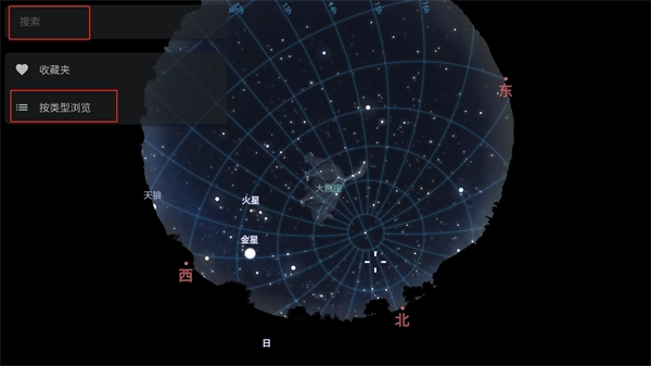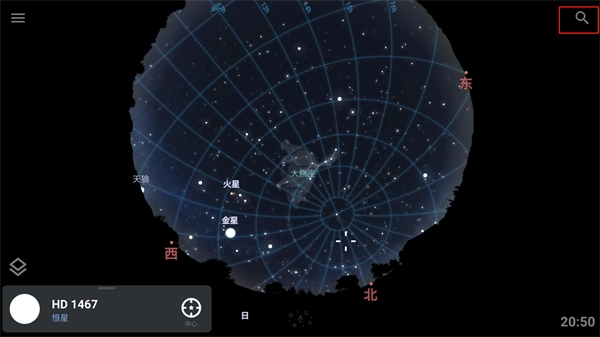 手机探测功能开启后,若上下左右移动手机,系统会自动呈现当前方位对应的模拟星空效果。