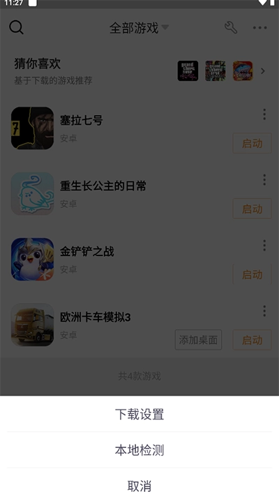 3、选择本地检测按钮(需先把本地游戏的安装包放到Download文件夹)。