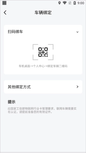 2、在打开的车辆绑定页面中通过扫描车辆中控大屏上的二维码即可绑定车辆。