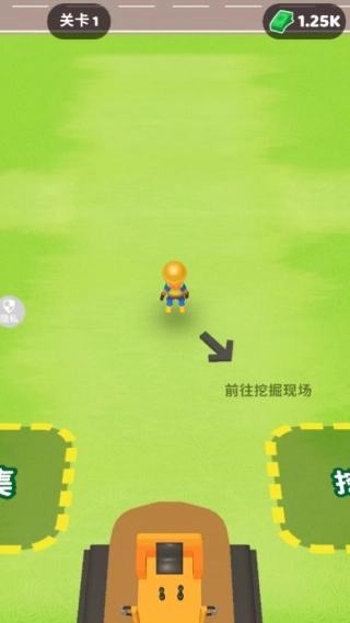 1、跟随 “前往挖掘现场” 的指引,操控角色移动至挖掘机处,开启采矿流程。