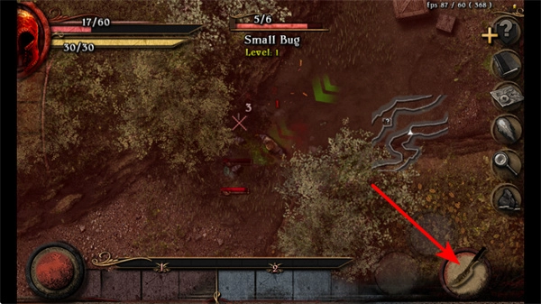 3、点击右下角武器图标,可切换并使用武器攻击敌人,这是战斗的关键步骤,攻击时需把握与敌人的距离攻击时机。