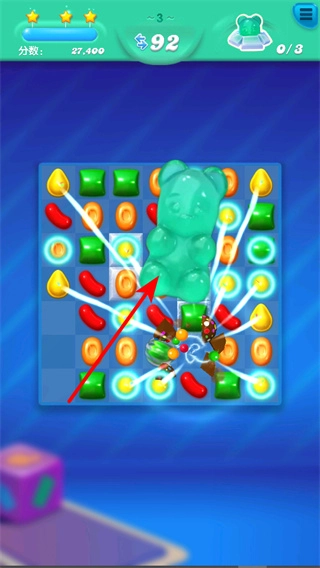 1、在游戏里,玩家通过交换相邻位置的糖果,让三个或三个以上相同颜色的糖果连成一条直线来实现消除,这是获取分数的核心操作,需留意糖果的布局以及目标任务。