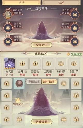 5、点击功法选项,通过拜师的方式学习技艺,进入所属门派后前往任务大厅接取并完成外门任务。若所在门派并非斗狂派,就将所有门派贡献在门派宝库中兑换醉春风与醉仙酿;若是斗狂派,则需积攒足够的门派贡献,到传功房兑换镇派绝学。