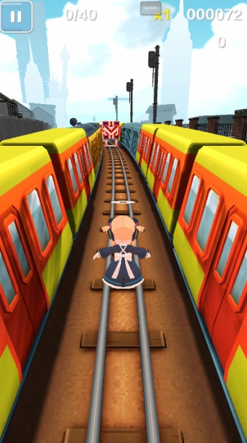 3、正式开始后,左右滑动屏幕可切换轨道,向上滑动为跳跃动作,向下滑动则是翻滚动作。