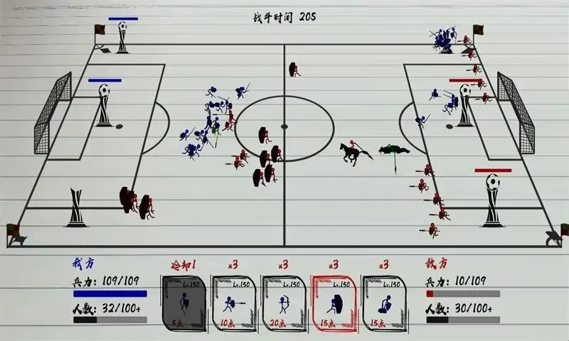 《火柴人战神》是一款充满乐趣的火柴人题材竞技游戏。在游戏过程中,你需要巧妙地布置和操控火柴人,参与各类精彩战斗。玩家能够迅速开启对战模式,扮演火柴人指挥官的角色,招募并指挥不同类型的火柴人士兵,尽情享受无尽的冒险带来的欢乐。