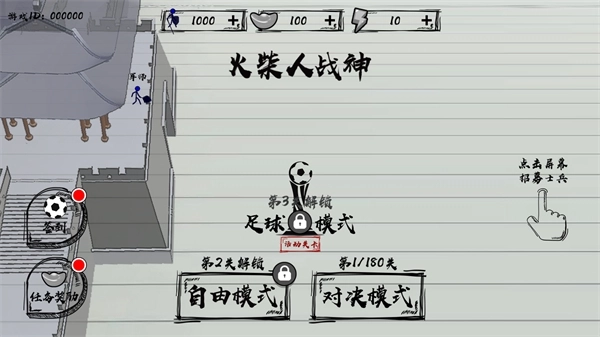 1、首先在本站并安装火柴人战神,安装完成后打开游戏进入到主界面。
