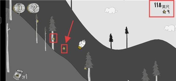 2、骑行过程中要多收集【星星】来积累分数,借助道具和地形的帮助让呆瓜飞起来,这样就能覆盖更远的距离,进而提升英尺数方面的成绩。