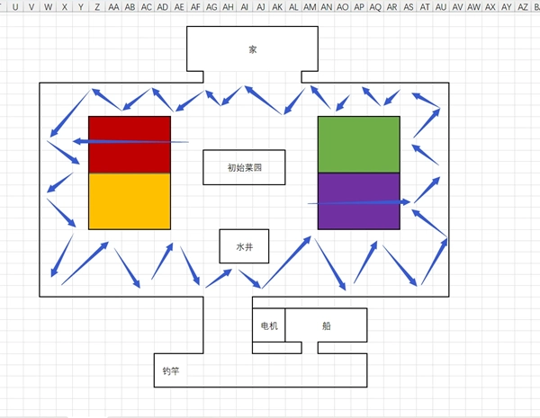 第二个原因是尽量把鹿哥牵制在初始菜园附近。这样的话,夜晚你就不需要格外注意鹿哥的存在了,对着农场绕圈,只走外围,完全不用担心遇到鹿哥。中间的菜园直接不要了,让鹿哥守着菜园。鹿哥守右下角就去左上角种植。