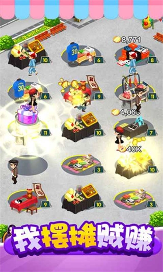 《我摆摊贼赚》是一款以摆摊经营为主题的休闲模拟游戏。玩家从一个简易小摊起步,通过进货、定价、招揽顾客等方式获取收入,进而逐步拓展摊位规模。游戏内商品种类丰富,市场需求变化迅速,需要玩家及时补货并合理管理收益。游戏操作简便,无需复杂策略规划,整体节奏舒缓平稳,支持随时开启或暂停经营,十分适合利用碎片化时间游玩。