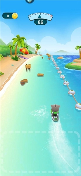 汤姆猫的摩托艇是汤姆猫系列中一款充满激情的跑酷游戏,采用卡通风格画面与Q版角色造型,你熟悉的安吉拉、汉克狗等角色都在这里登场,风趣的画风搭配丰富的关卡、场景与道具设定,能为玩家带来极佳的游戏体验!同时,为了营造真实的游戏情境,游戏还融入了障碍物、惯性、水的冲力等细微有趣的元素。游戏背景设定为:汤姆猫和小伙伴们的海边度假屋被无情海啸摧毁,潮汐退去后,只剩下一片废墟和一艘摩托艇。