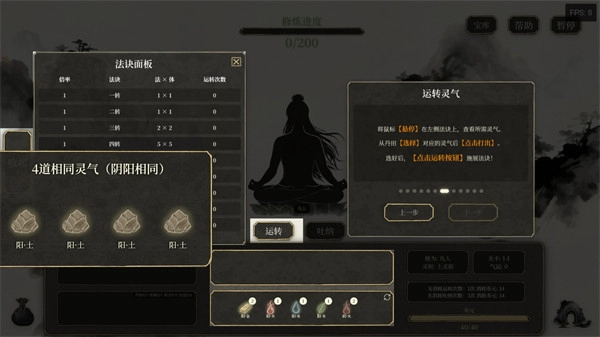 3、修炼进度可通过选择领取的方式获取,不同发决能带来不同加成,点击选择后可去除多余灵气。