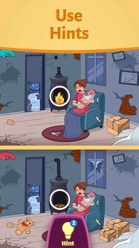 2.提示功能:当玩家遇到困难时,可使用提示,帮助找到关键差异。