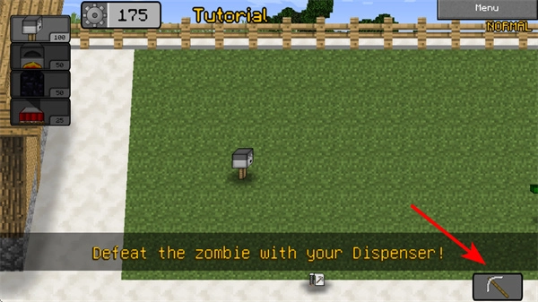 3、点击右侧工具图标如镐子,可对防御装置进行升级或修复,操作时需在僵尸进攻间隙进行,确保防线的持续作战能力。