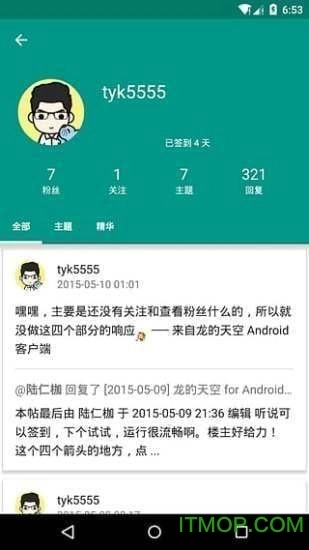 界面遵循Google Material Design规范,目前已具备龙空论坛的大部分功能。