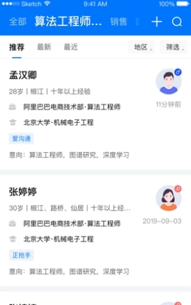 -寻找周边人才:以直观的方式发现附近的人才,尤其适合企业招聘行政或财务岗位的人员。