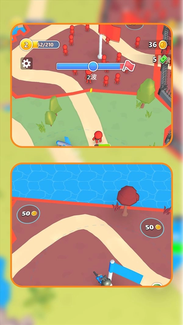1、游戏内包含步兵、弓箭手、骑兵等多种不同类型的小兵,玩家能够根据自己的策略自由进行搭配组合,打造出具有强大战斗力的阵容。 2、玩家可灵活布置各类防御设施,以此构建起稳固的防线,既能有效抵御敌军的进攻,又能为己方的进攻行动提供有力支持。