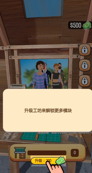 进入游戏后,消耗300金币将工坊升级至金级,以此解锁更多创作模块,为后续开展雕刻任务以及使用各类工具筑牢基础。
