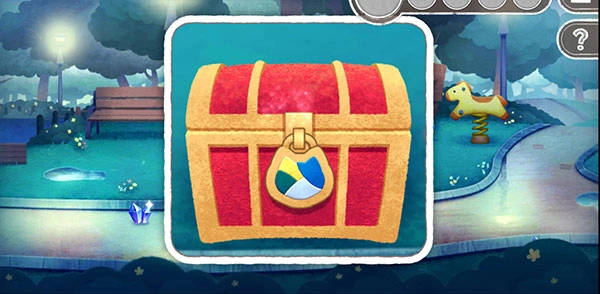 3、然后我们依旧在天鹅船这,先捡起水坑中的荷叶,以及找到旁边柱子里藏着的青蛙