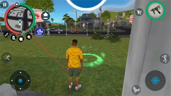 4、在地图中寻找绿色光圈等资源点,获取道具和资源,提升角色实力,同时完成各类黑帮犯罪任务。