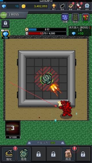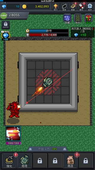 4、战斗中合理利用炮塔的攻击特性,集中火力消灭BOSS,完成关卡挑战,获取丰厚奖励。