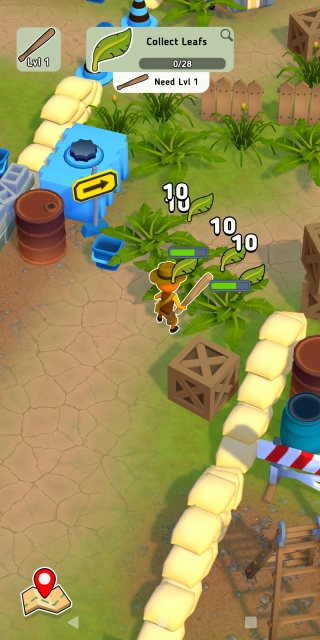 3. 画面上方的任务提示会持续更新,当前我们要依据任务去收集树叶。借助收集资源来升级武器、制作工具,一步步增强你的生存能力。
