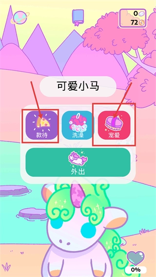 1、针对【可爱小马】,使用【款待】和【宠爱】功能,提升其状态,为后续养成与探索奠定基础。