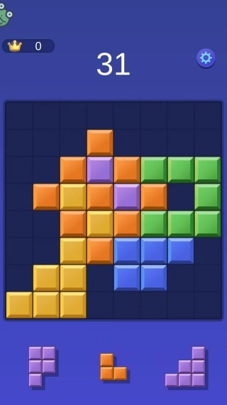 1、在经典坠落玩法里,操控下落的方块进行移动与旋转,让它们在底部拼接成完整的水平行,以此实现消除并获取分数,防止方块堆积到顶部而致使游戏结束。