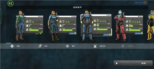 3、接着再选择盔甲,里面有众多的盔甲可以自由选择,每套盔甲的属性都不一样包括防御力、速度等