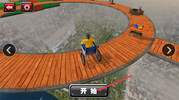 1、首先进入界面后点击开始来开启紧张刺激地轮椅高空驾驶;