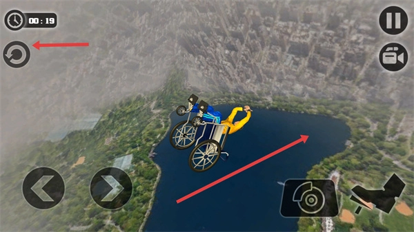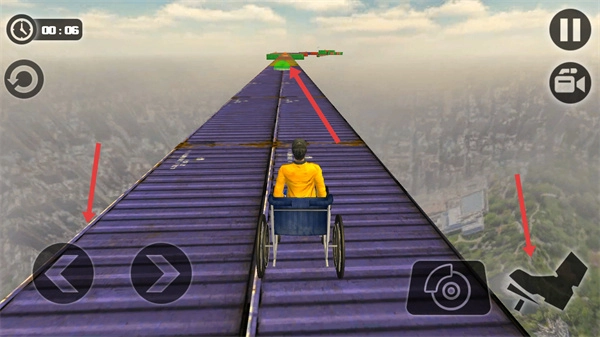 3、接着点击左下角的按键来操控轮椅的方向,再点击右下角的加速按键让轮椅前进;
