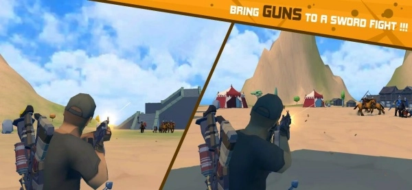 《枪手VS剑士》是一款充满创意的动作角色扮演游戏,巧妙融合中世纪冷兵器时代背景与现代热兵器载具元素,营造出强烈反差感的独特战场体验。玩家可使用手枪、狙击枪等六大类枪械,对抗弓箭手、重甲兵等不同类型的敌军;还能驾驶坦克、操控飞机,开启陆空一体的立体化作战模式。通过不断战斗,玩家可升级装备系统,解锁威力更强劲的武器。