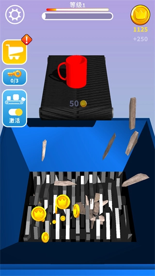 5、利用获取的金币升级粉碎机的速度、高度与效率,使其能更从容地应对更艰巨的挑战。