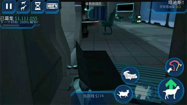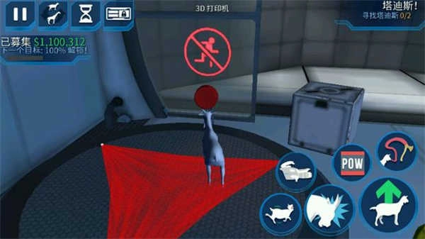2、在游戏里,玩家得操控疯羊持续筹集资金,不少NPC的头顶都有个金钱标识,玩家把他们顶撞后就能收集这些资金。