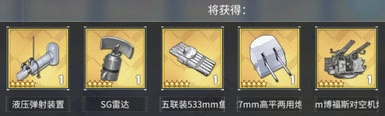 5-1:双联装127mm高平两用炮MK12T3、改良锅炉T3、双联装127mm高平两用炮MK12T2、TBF复仇者T3、零战五二型T2