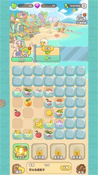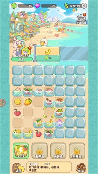 3、当树叶积攒到一定数量时,就能够解锁新的店铺或设施,也可以消耗树叶对已有的设施进行升级,以此提升度假村的经营效率。