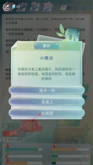 2、在不同的年龄会触发不同的剧情事件,点击下方按钮进行剧情选项选择。