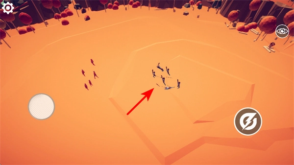 3、按照红色箭头的指引操作,点击敌方单位集中的区域,我方单位就会朝着该区域移动并展开攻击,从而引发双方单位的正面交锋。