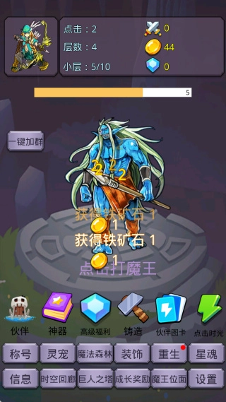 1、快速点击挑战魔王,提升你的实力和等级,变得更强大!