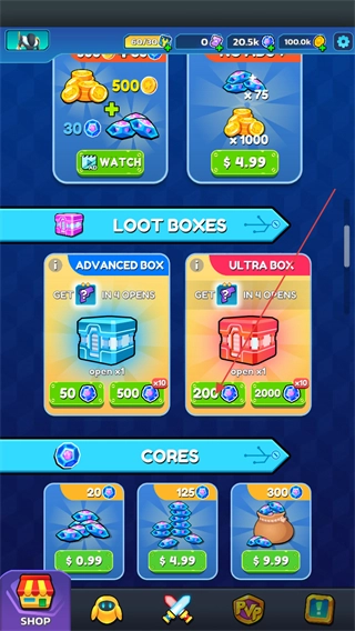 1、在商城中找到武器装备宝箱,点击按钮花费宝石进行开启。