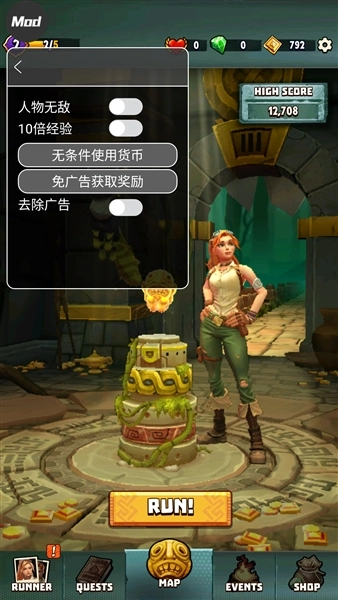2、点击RUN开始,玩家需控制角色移动跳跃来躲避障碍和怪物的抓捕;