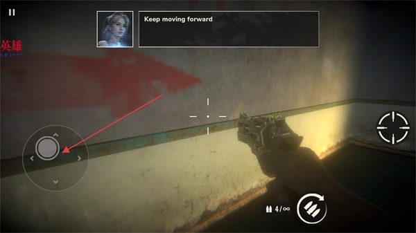 1、使用左侧虚拟摇杆操控角色移动,按照提示,不断向前探索关卡。
