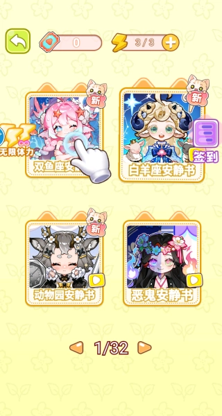 2、进入玩法选择页面后,可从双鱼座安静书、白羊座安静书、动物园安静书等不同类型里,选择自己喜欢的主题进入。