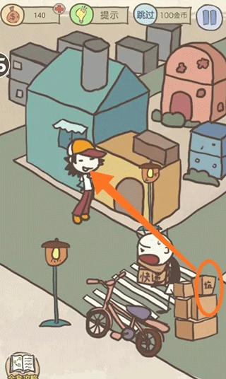 把堆着纸箱、带有“坑”字的箱子拖给戴帽子的角色,就能让小坑变身闪电侠,顺利通关啦。