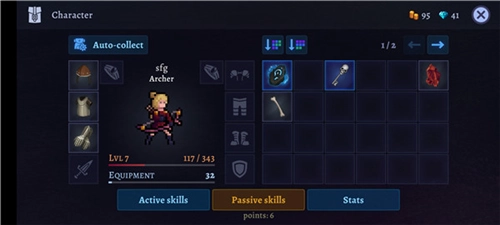 有不少方法能让你的角色得到强化。游戏里有8种不同的装备,其中7种属于稀有品质。你可以给盔甲开槽,把宝石嵌进去,也能把几种不同类型的宝石合成更高级的宝石。镇上的铁匠很乐意帮你打造和重铸盔甲,这样能让盔甲变得更厉害。